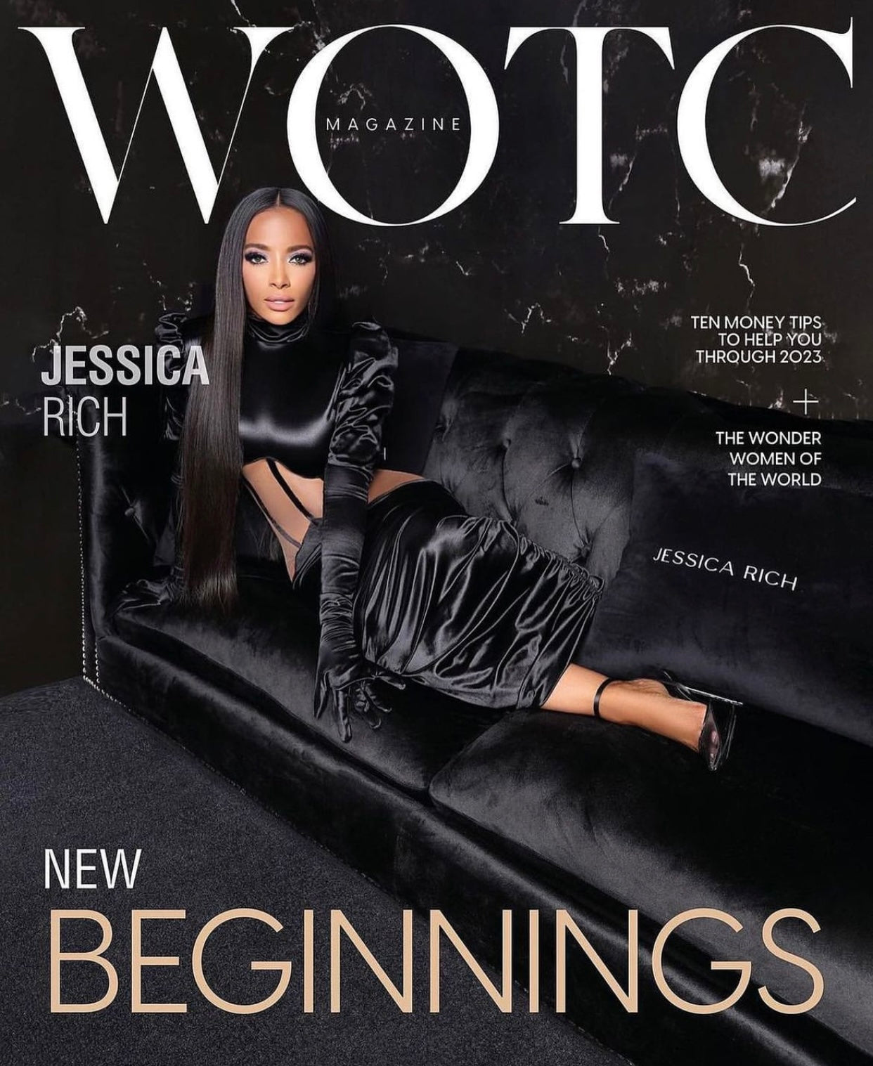 Renowned shoe designer Jessica Rich is featured on the front cover of W.O.T.C Magazine donning a bespoke Belle Massacre gown.